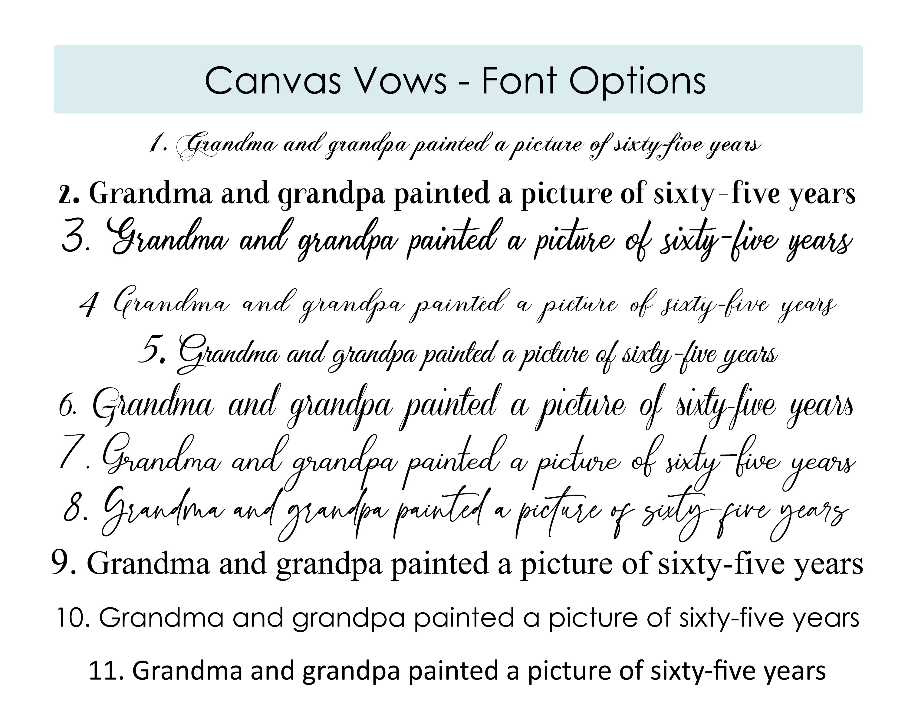 Message us at support@canvasvows.com if you have any questions about the song you want to use or how you want your canvas print to look!