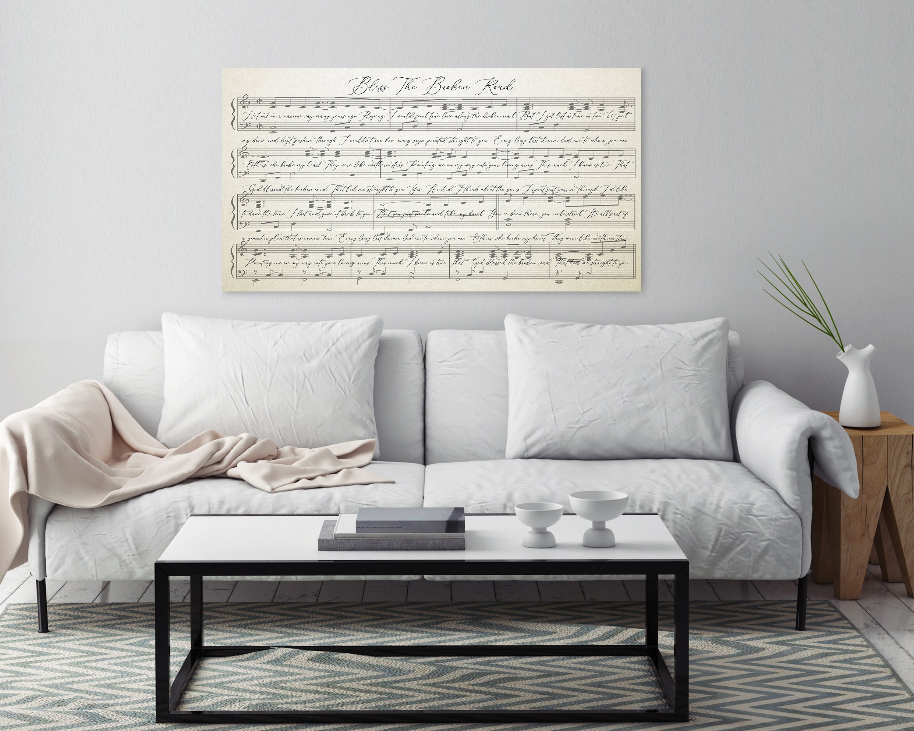 This charcoal music wall art canvas with lyrics is the perfect addition to your wall decor! Sheet music canvases make great staple pieces for bedroom, living room, and office decor. They also make amazing gifts for the people you care about most! Gift this music wall art with lyrics canvas to your husband or wife for your anniversary, to your parents for their anniversary, as a wedding gift, or just because! Choose any song that has existing sheet music and we will print it onto this stunning canvas! This canvas comes in charcoal, off white, white rustic, ivory background, copper or gold color for the sheet music and lyrics. The sheet music is printed against this color with the title at the top, and the song lyrics softly printed in the backdrop. Choose your favorite song, your first dance wedding song, a song that reminds you of someone, or their favorite song!