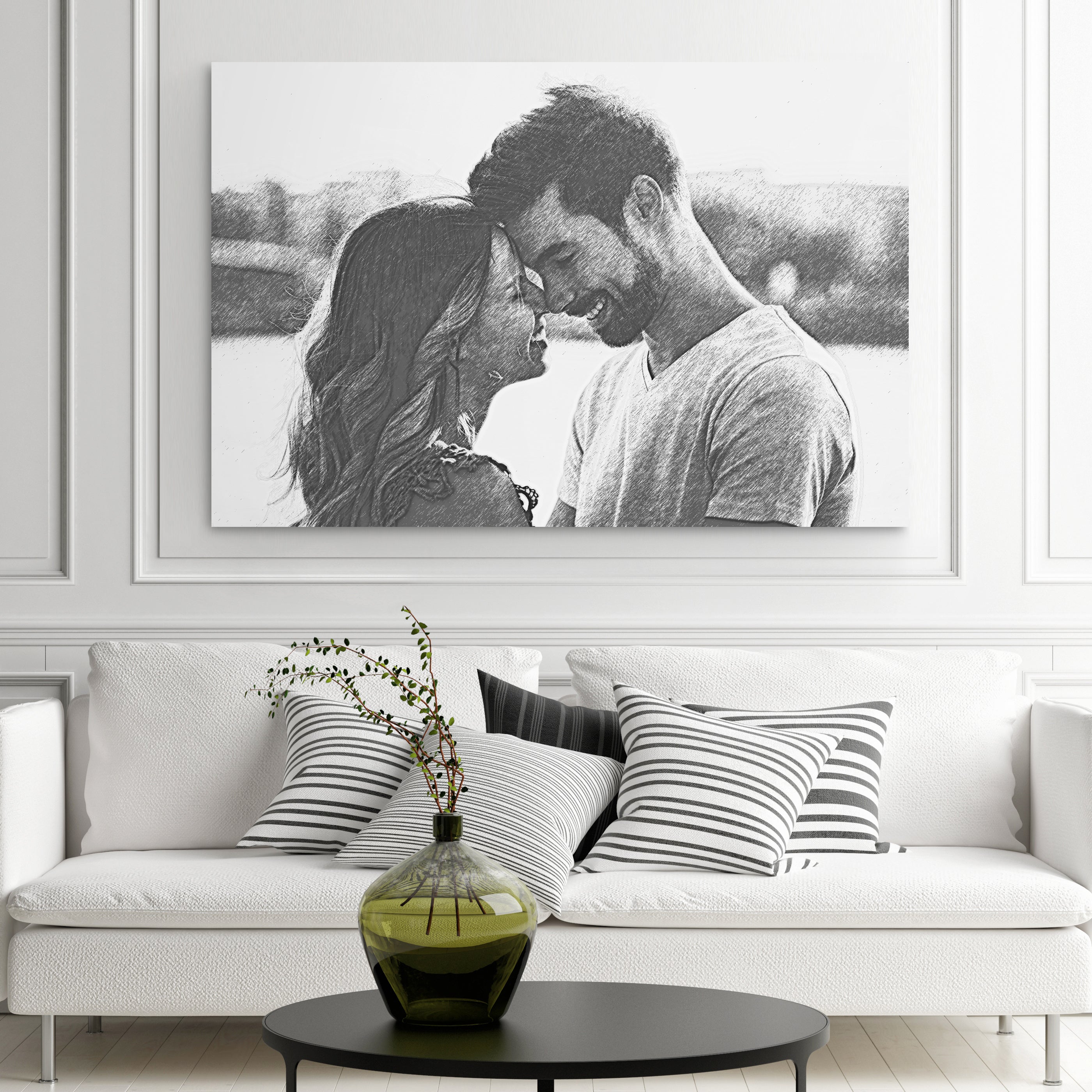 With this photo to pencil sketch option, you can let the image and the memory speak for itself without anything else getting in its way. There are so many great memories you can commemorate with this personalized canvas wall art photo to pencil sketch: your wedding day, a memorable vacation, the day your child was born or just a great time with your spouse!