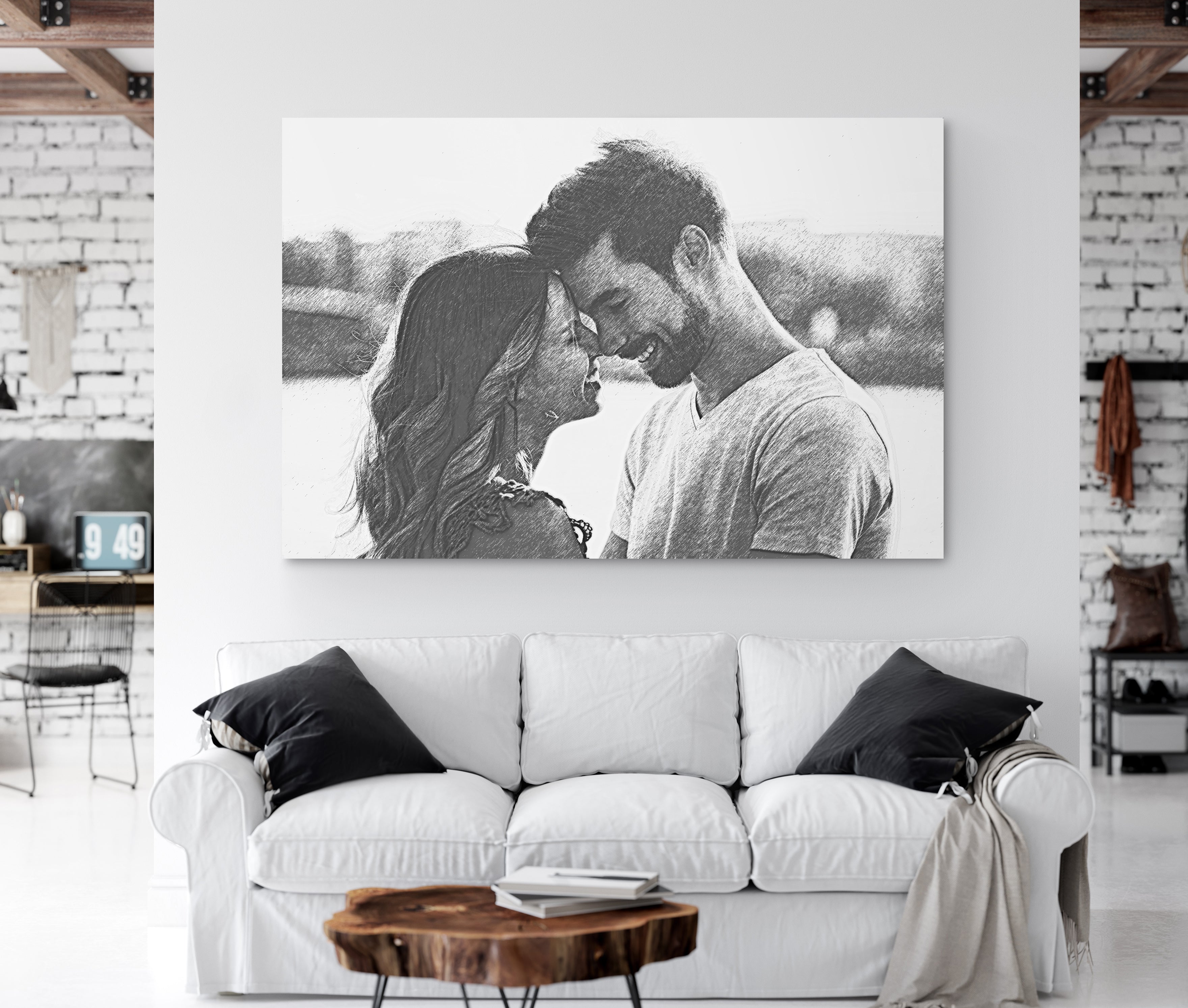The wonderful thing about this personalized canvas wall art is that we can take any image you have and digitally reproduce it so that it looks like it was sketched in pencil by an artist! The end result is truly a work of art and makes for a great gift for her or gift for him!